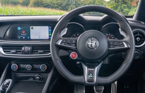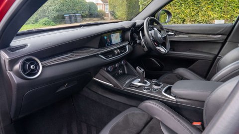 Alfa Red, Black Leather/Alcantara With Grey Stitching, Full Leather Interior, Carbon Fibre Interior Trim, Panoramic Glass Sunroof, Sound Theatre By Harmon Kardon, Driver Assist Plus Package, Adaptive Cruise Control, Flat Bottomed Steering Wheel With Carbon Fibre Inserts, 20" Dark 5 Hole Alloys, Red Brake Calipers, Carbon Fibre V Grille Surround, Carbon Fibre Mirror Covers, Black Gloss Roofbar Xenon Headlights, High Beam Assist, Front and Rear Parking Sensors, Reverse Camera, Tinted Rear Lights, Keyless Entry, Electric Folding Mirrors, Climate Control, Alfa Romeo Touchscreen Infotainment System, Wireless Apple CarPlay/Android Auto, Wireless Charging, Bluetooth Telephone and Audio, DAB Radio, USB, Active Blind Spot Assist, Lane Keep Assist, Traffic Sign Recognition (TSR), Active Cruise Control. Full Service History - Just Serviced