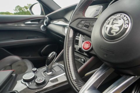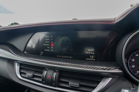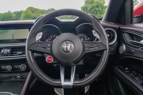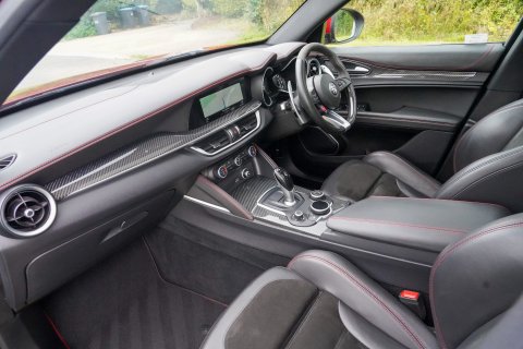 Competizione Red (Tri-Coat), Black Leather/Alcantara With Red Stitching, Full Leather Interior, Carbon Fibre Interior Trim, Panoramic Glass Sunroof, Sound Theatre By Harmon Kardon, Driver Assist Plus Package, Adaptive Cruise Control, Flat Bottomed Steering Wheel With Carbon Fibre Inserts, 20" Dark 5 Hole Alloys, Yellow Calipers, Xenon Headlights, High Beam Assist, Front and Rear Parking Sensors, Reverse Camera, Tinted Rear Lights, Keyless Entry, Electric Folding Mirrors, Climate Control, Alfa Romeo Touchscreen Infotainment System, Apple CarPlay/Android Auto, Wireless Charging, Bluetooth Telephone and Audio, DAB Radio, USB, Active Blind Spot Assist, Lane Keep Assist, Traffic Sign Recognition (TSR), Active Cruise Control. Full Service History - Just Serviced