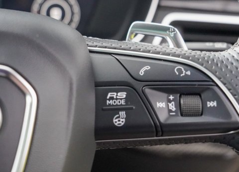 Mythos Black Metallic, Black Leather SuperSport Seats With Rock Grey Stitching, Carbon Fibre Interior Trim, Comfort and Sound Package, 20" RS Alloys Gloss Black, Red Brake Calipers, Carbon Fibre Exterior Pack, Panoramic Glass Sunroof, RS Sports Exhaust, Keyless Entry, Adaptive LED Headlights, High Beam Assist, Electric Folding Mirrors, Front and Rear Parking Sensors, Reverse Camera, Surround View Cameras, Tinted Windows, Automatic Tailgate, Electric Memory Seats, Heated Seats, Massaging Seats, Cruise Control, Climate Control, Audi MMI Satellite Navigation, Virtual Cockpit, Apple CarPlay, Wireless Charging, USB, DAB, Bang & Olufsen 3D Sound System, Extended LED Interior Lighting, Full Audi Service History