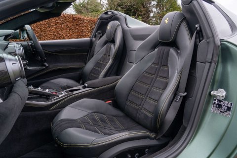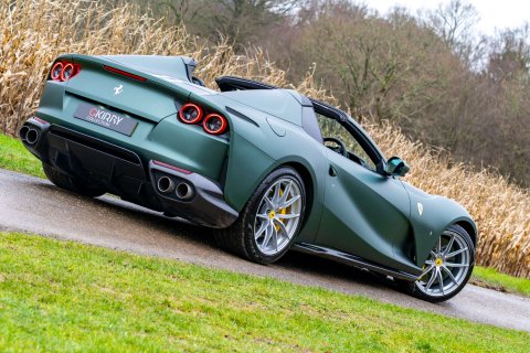 Gkirby Collection are proud to offer this incredible specification 812 GTS currently wrapped Matte Military Green (this was done by us this year fro the previous owner and can be removed). This stunning car has the remainder of its service package until 2029 and has Ferrari Warranty until March 2027. Tour De France Blue, Black Leather With Extensive Alcantara and Yellow Stitching, 20" Matte Silver Forged Racing Wheels, Yellow Brake Calipers, Scuderia Ferrari Shields, Titanium Exhaust Pipes, ADAS Full Package, Carbon Fibre Front Splitter, Front Part Of Front Bumper In Carbon Fibre, Rear Side Bumper In Carbon Fibre, Carbon Fibre Under Door Cover, Carbon Fibre Sill Kicks, Carbon Fibre Drivers Zone With LEDs, Dash Inserts In Carbon Fibre, Fibre Fibre Central Bridge, Carbon Fibre Inner Door Handles, Upper Part Of Centre Console In Carbon Fibre, Parking Camera, Daytona Style Seats, Full Electric Seats, Alcantara Door Panels, Central Part Of Seats In Alcantara, Coloured Special Stitching In Giallo, Cavallino Stitched To Headrest, Alcantara Lower Dashboard, Upper Part Of Passenger Compartment In Alcantara, Alcantara Centre Console, Black Air Vent Grips On Dashboard, High Powered Hifi, Tracker. Full Ferrari Service History