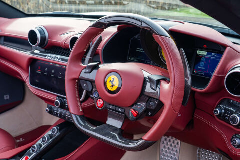 GKirby Collection are proud to offer this incredibly low mileage and what must be the very best spec Portofino on the market. Also supplied with Ferrari Warranty until November 2026. Grigio Silverstone, Two Tone Body Painting - Nero (Black) Roof, Bordeaux Extended Leather Interior, Magneride Dual Suspension, Passenger Display, High Powered JBL HiFi, 20" Forged Diamond Alloys, Yellow Brake Calipers, Scuderia Shields To Fenders, Carbon Fibre Driving Zone, Carbon Fibre Steering Wheel WIth LED's, Carbon Fibre Dash Inserts, Carbon Fibre Central Bridge, Carbon Fibre Rear Diffuser, Carbon Fibre Under Doors Covers, Carbon Fibre Front Splitter, Carbon Fibre Rear Air Ducts, Front Air Vents In Carbon Fibre, Exterior Sill Kicks In Carbon Fibre, Carbon Fibre Cup Holder, Adaptive Headlights, Front Grille With Chromed Edges, Black Tailpipes, Heat Insulating Windscreen, Electrochromic Rear View Mirror, Front and Rear Parking Cameras, Electric Folding Mirrors, Daytona Style Seats, Fully Electric Seats, Coloured Standard Stitching Extra Range, Coloured Steering Wheel - Bordeaux, Alcantara Seats Inner Trim - Bordeaux, Alcantara Interior Carpet - Sabbia, Leather Upholstered Seat Backrest, Coloured Safety Belts - Bordeaux, Centre Console In Leather - Bordeaux, Coloured Upper Dash - Bordeaux, Cavillino Stitched In Headrest - Beige Chiaro, Additional Coloured Mats With Logo, Inner Colour Door Panel Trim Leather, Inner Colour Rear Leather Trim, Homelink - Garage Door Opener, Aluminium Driver And Passenger Footrest, Yellow Rev Counter, Foldable Rear Seat Backrest. Full Ferrari History, Ferrari Warranty Until Nov 2026
