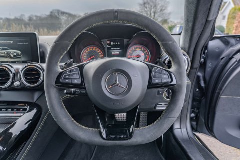 Selenite Grey Metallic, AMG Performance Seats, Exclusive Nappa Leather/Dinamica Black With Yellow Stitching, AMG Matt Black Carbon Fibre Trim Package, Carbon Fibre Roof, AMG High Performance Ceramic Composite Braking System, AMG Carbon Fibre Exterior Package I, AMG Carbon Fibre Exterior Package II, AMG Performance Exhaust Switchable, 19/20'' AMG Performance Forged Alloys - 5 Twin Spoke In Black, Premium Package, High Performance LED Headlights, Adaptive High Beam Assist, Front and Rear Parking Sensors, Reverse Camera, Self Parking, Electric Folding Mirrors, Keyless Entry an GO, AMG Carbon Fibre Door Sills, Heated Seats, AMG Performance Steering Wheel, Yellow Seat Belts, Climate Control, Cruise Control, Traffic Sign Recognition, COMAND Satellite Navigation, Bluetooth Telephone Prep, Bluetooth Audio Streaming, DAB Radio, USB Interface, Ambient Lighting. Full Mercedes Service History