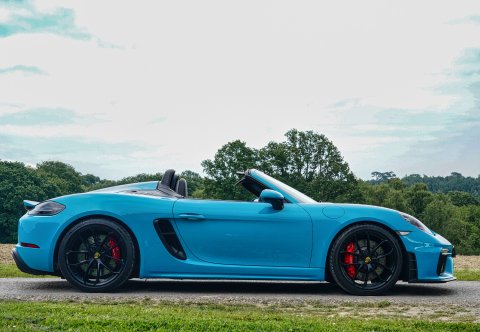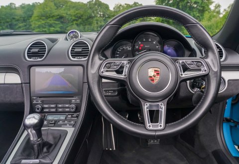 Miami Blue, Black Leather With Extensive Alcantara, Contrast Stitching In Silver Grey, Brushed Aluminium Interior Trim, Sports Seats Plus, Convertible Top In Black, LED Headlights With PDLS+, Wheels Painted Satin Black, Auto Dimming Mirrors, GT Steering Wheel In Leather, Steering Column Casings In Leather, Two Zone Climate Control, Silver Grey Seat Belts, Passenger Footwell storage Net, Cruise Control, PCM Satellite Navigation, Bluetooth Telephone And Audio Prep, Apple Carplay, USB, DAB, Speed Limit Display, Light Design Package. Full Porshce Service History, Porsche Warranty Until September 2025