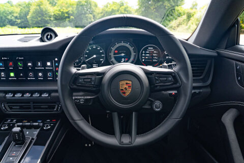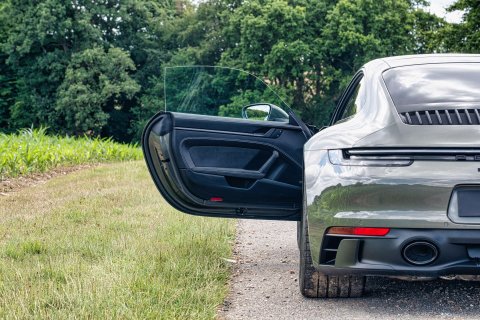 GKirby Collection are proud to offer this stunning specification 911 GTS with Porsche Warranty until November 2026. Aventurine Green, Front Impact Zone PPF, GTS Interior Package, Electric Glass Sliding Sunroof, Extended Matt Carbon Fibre Interior, Porsche Carbon Ceramic Brakes (PCCB), Rear Axle Steering, Sport Chrono, Sports Exhaust, 20/21" Turbo S Wheels Painted Satin Black, Power Steering Plus, Privacy Glass, ParkAssist Front And Rear With Surround View Camera, Tinted LED MATRIX Headlights With PDLS Plus, Electric Folding Mirrors, Porsche Entry and Drive, Sport Seats Plus, Heated Seats, Heated GT Steering Wheel In Leather, Storage Package, Light Design Package, Touchscreen PCM Satellite Navigation, Wireless Apple CarPlay, Bluetooth Telephone and Audio, USB, DAB Radio, BOSE Surround Sound, Rev Counter In Crayon. Porsche Warranty Until November 2026