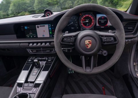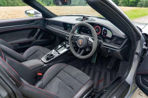 GT Silver, GTS Alcantara Interior Package With Guards Red Stitching, GTS Interior Package, Carbon Fibre Interior Trim, Convertible RoofIn Black, 20" Turbo S Centre Lock Alloys In Black, Sports Exhaust System, Sport Chrono Package, Tinted LED Main Headlights In Black With PDLS Plus, ParkAssist Front and Rear, Surround View Cameras, Porsche Entry And Drive, Electric Folding Mirrors, Mirror Bases Painted In Exterior Colour, Power Steering Plus, Windscreen With Grey Top Tint, Illuminated Side Sills In Carbon, Porsche Logo LED Entry Lights, 18 Way Electric Adaptive Sports Seats, Memory Seats, Heated Seats, Heated MultiFunction GT Steering Wheel In Race-Tex, Race-Tex Sun Visors, Instrument Dials in Carmine Red, Storage Package, Cruise Control, Climate Control, PCM Touch Screen Satellite Navigation, Apple CarPlay, Bluetooth Telephone and Audio Streaming, DAB Radio, USB Interface, BOSE HiFi, Light Design Package, Full Porsche Service History, Porsche Warranty Until April 2026