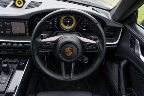 GKirby Collection are proud to offer this truly stunning spec and condition 992 Turbo S. Jet Black Metallic, Full Black Leather, Contrast Crayon Stitching, Full PPF, Burmester High End Surround Sound, Carbon Fibre Interior, 20/21" Turbo S Exclusive Alloys, Wheels Painted Gloss Black, Electric Sliding Glass Sunroof, Front Axle Lift, PDCC, PCBB, PASM Sports Suspension -10mm, Sports Exhaust System With Black Tailpipes, Power Steering Plus, LED Main Headlights In Black With Matrix Beam Inc PDLS Plus, Porsche Entry And Drive, Exclusive Design Taillights, Exclusive Design Filler Cap, Exterior Mirror Uppers In Carbon Fibre, Exterior Mirror Lower Part In Glass Black, Rear Side Air Vents In Gloss Black, Side Window Trims In Gloss Black, Porsche Designation In Gloss Black, Porsche Logo In Gloss Black, Side Skirts Painted In Exterior Colour, Privacy Glass, Door Sills In Carbon Fibre - Illuminated, Porsche Logo LED Courtesy Lights, Heated Multi-Function Steering Wheel With Carbon Fibre Inserts, Porsche Crest To Storage Compartment Cover, Racing Yellow Seat Belts, Racing Yellow Rev Counter, Racing Yellow Chrono Dial, Wireless Apple CarPlay, USB, Storage Package, Light Design Package. Full Porsche Service History
