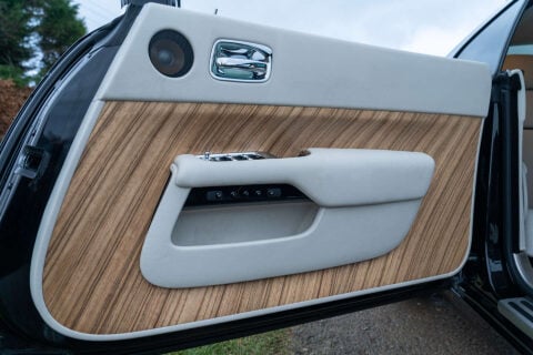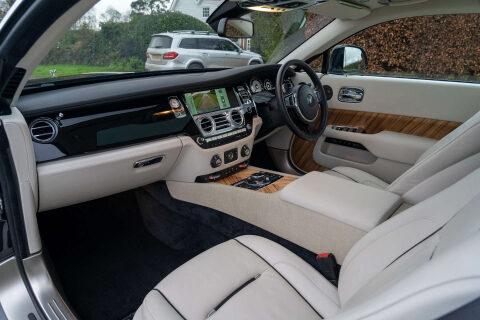 GKirby Collection are proud to offer this stunning specification and condition Rolls Royce Wraith. Having had just 2 owners from new the car has an extensive service history with Rolls Royce Sunningdale and has just had a major service. Diamond Metallic Black, Extended Leather Trim, Seashell Leather interior, Extended Wood Panelling, 22" Forged Vossen Multi-Spoke Alloys, Visible Tailpipes, Glass Roof, Driver Assistance Package 3, Head-Up Display, Adaptive Cruise, Lane Departure Warning, Night Vision, Side View Cameras, Comfort Access, Electric Folding Mirrors, Parking Sensors Front and Rear, Reversing Camera With Top View, Adaptive Headlights, High Beam Assist, Privacy Glass, Umbrellas To Front Wings, Electric Memory Seats, Heated Seats, Massaging Seats, RR Logos To All Headrests, Professional Navigation, Bluetooth Telephone and Audio Prep, DAB, Rolls Royce Bespoke Audio, Lambswool Floor Mats, Ambient Lighting, Tracker. Only 2 owners from new with Extensive Rolls Royce main dealer history 12 services. Just had Service At Rolle Royce